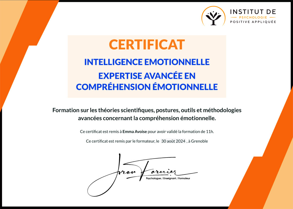 Les 16 mois à travailler sur cette formation me donnent confiance quand au fait vous trouverez de la valeur, de la structure et de la finesse sur le travail des émotions.