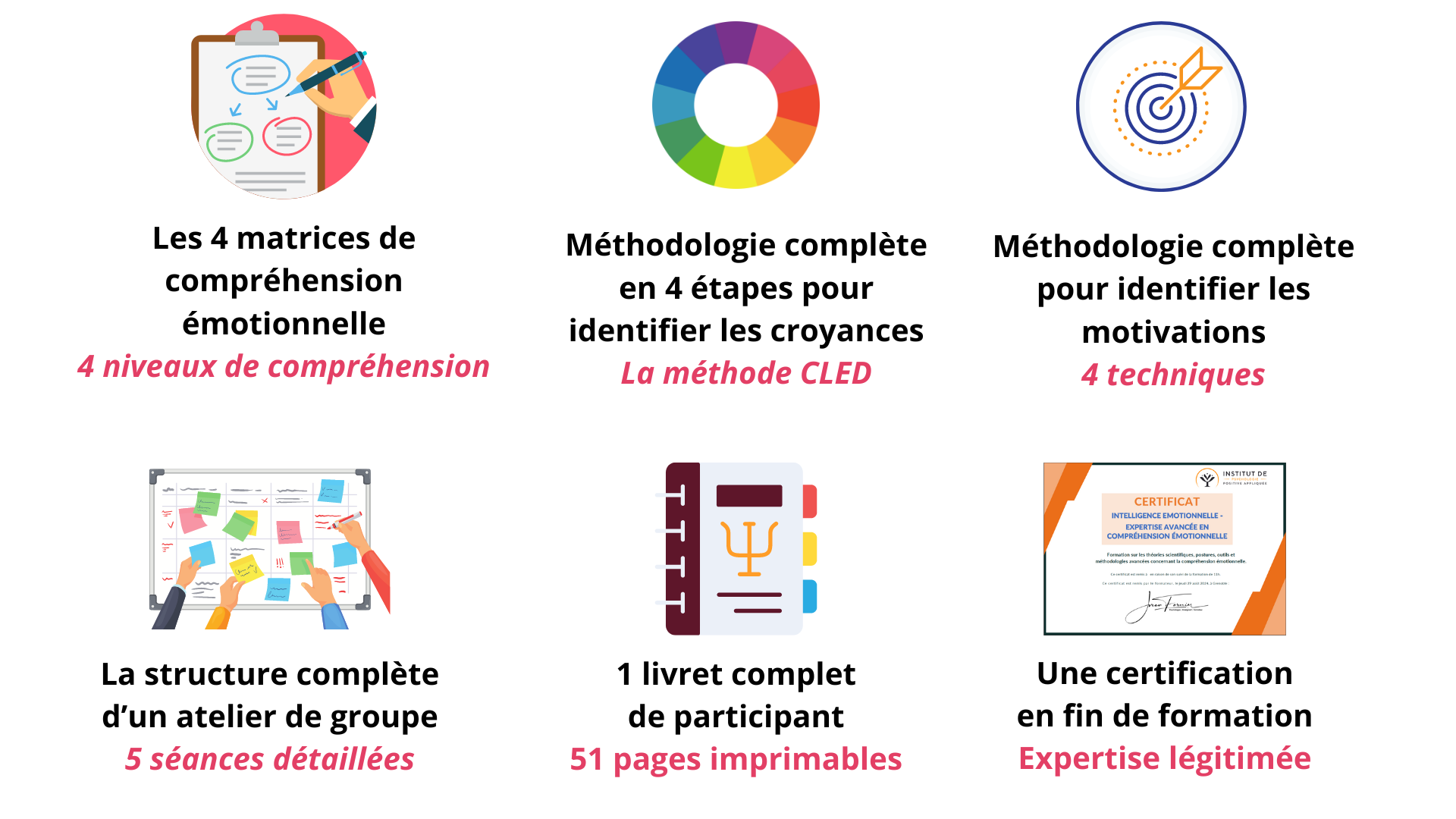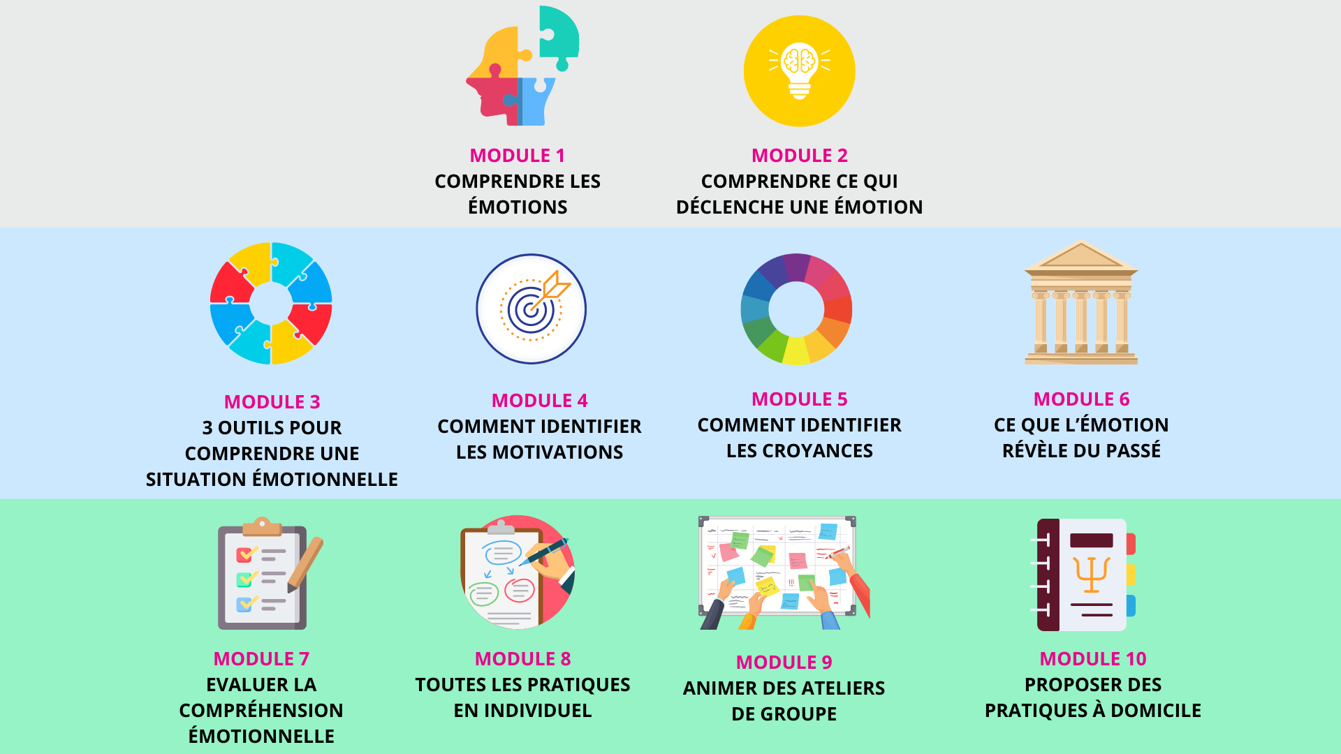 J'ai conçu le déroulé pédagogique pour vous amener bien au-delà des fondamentaux théoriques nécessaires pour comprendre l'émotion.