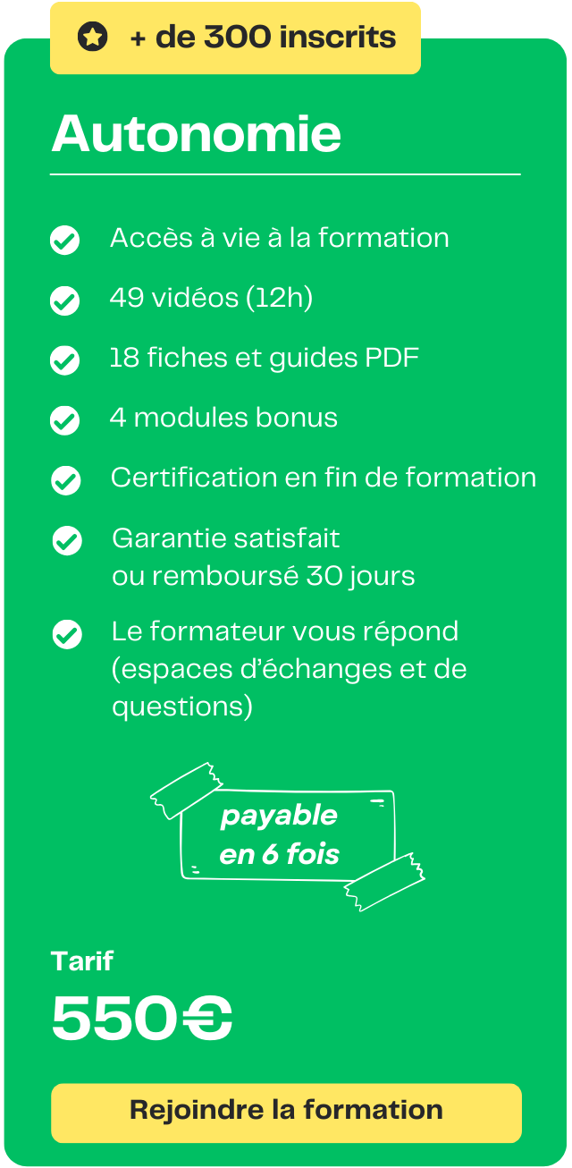 49 vidéos - 12 heures de formation - 18 guides pratiques